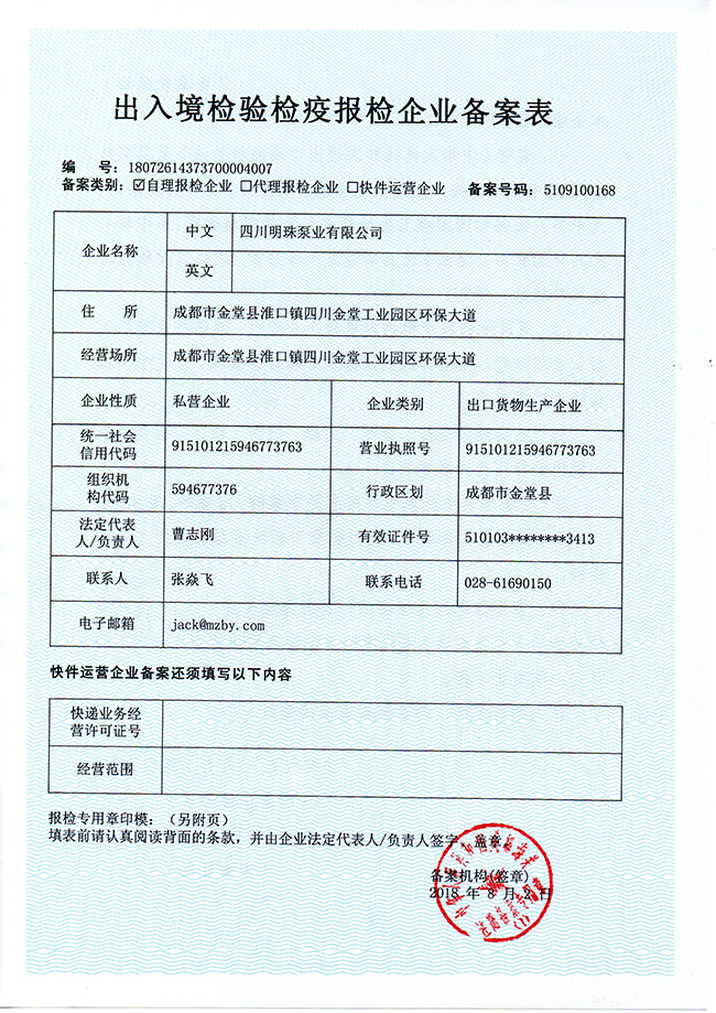 出入境检验检疫报检企业备案表