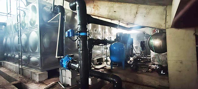 炎炎夏日我司供水水箱机组应用山东莒县中学生活用水之急!