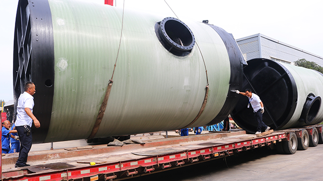 我司直径3.8米大型预制泵站装车出货绵阳游仙区环保建设!