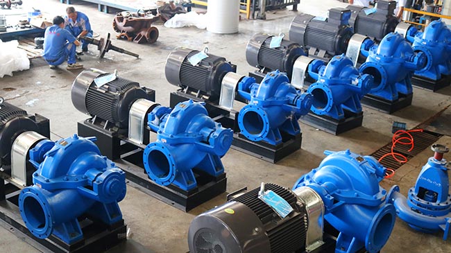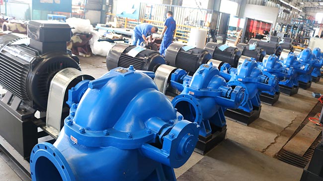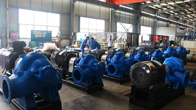 我司批量大流量单级双吸离心泵生产一线蓄势待发出口加沙地区!